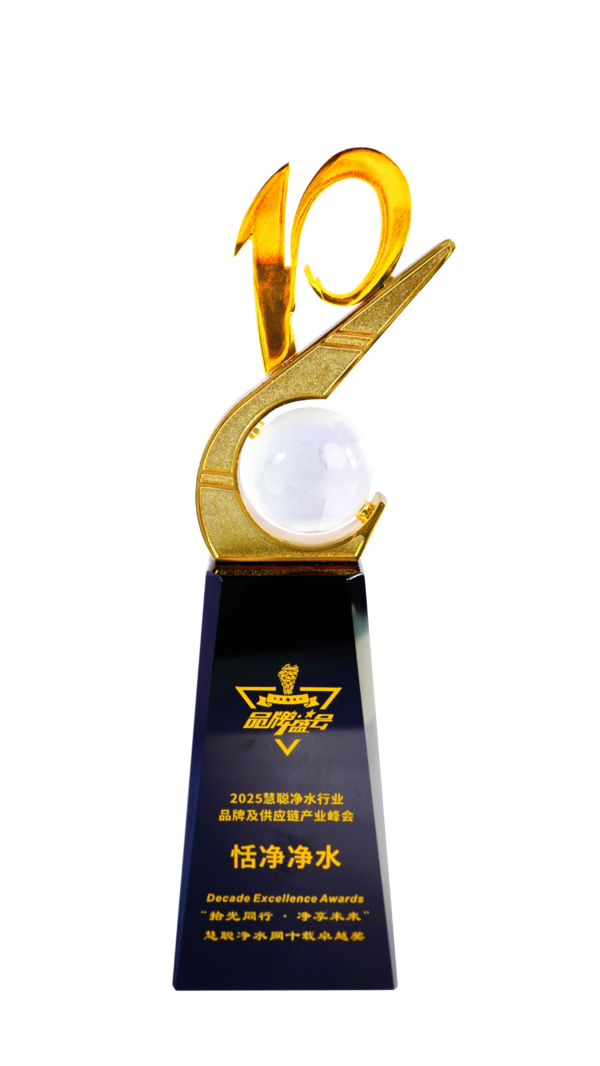 "慧聪净水网十载卓越奖"则是对恬净净水长期行业贡献的肯定。十六年来,品牌始终践行"品质体现价值,服务实现增值"的理念,作为"高端全屋净水定制专家",构建了行业领先的运营体系: